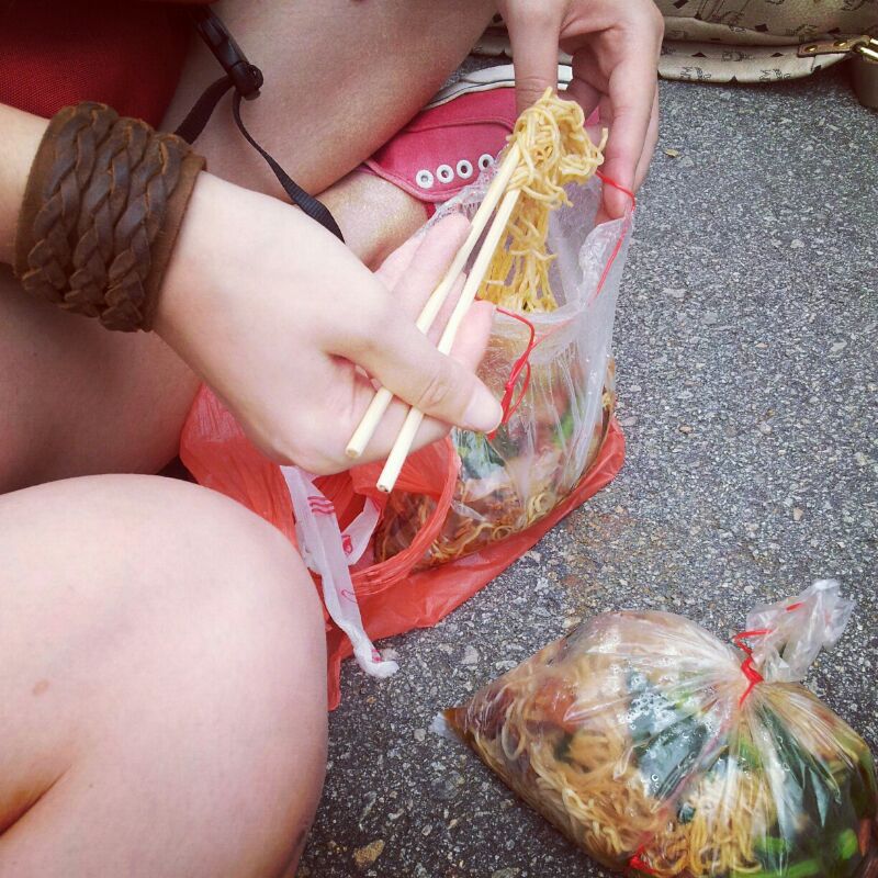 we had wanton mee by the roadside while queuing under the hot sun.